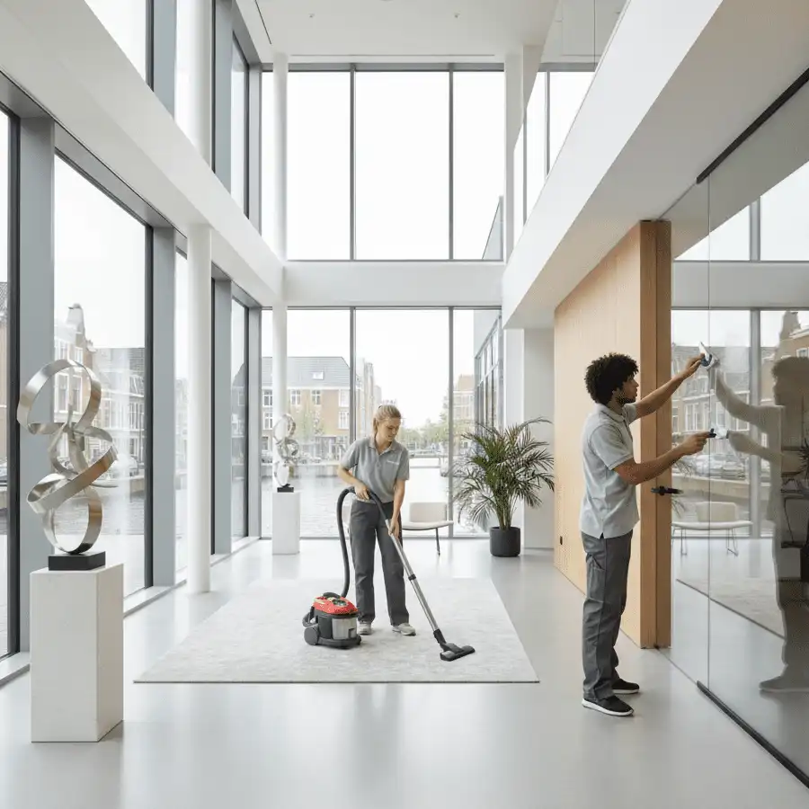 Schoonmaak van kantoren en bedrijfspanden in purmerend en omgeving. Van basis onderhoud tot vaste teams, met dag- of avondschoonmaak. Inclusief sanitair, pantry, vloeren, werkplekken en algemene ruimtes.